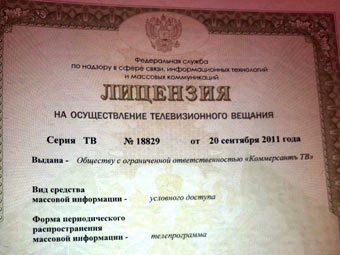 Бланк лицензии "Коммерсантъ-ТВ". Фото с официальной страницы на Facebook